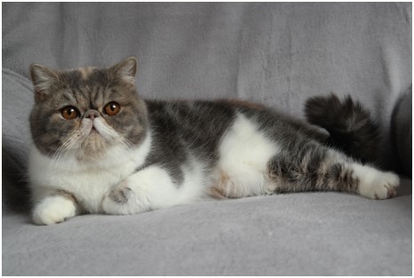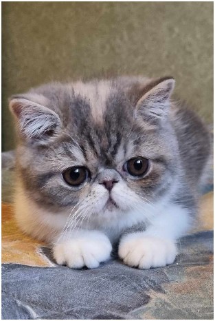Ein besonderes Exotic- Mädchen sollte es sein und so kam die kleine Ungarin als blue torbie cl. white Kätzchen in unsere Cattery. |